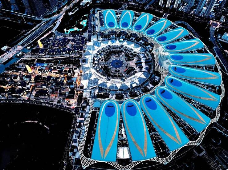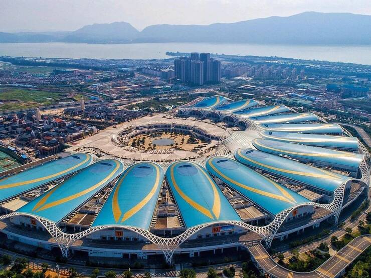 近日,昆明滇池國際會展中心以其“孔雀開屏”的造型成為全球矚目的建筑奇觀,該建筑復刻了孔雀尾羽的絢麗姿態(tài)。有網(wǎng)友聲稱:“它美得讓人忘記呼吸,像孔雀開屏的剎那,也像人類對永恒的短暫觸碰“。也有網(wǎng)友認為,從視覺上看,有點像“鑲了鉆的絕美指甲”。