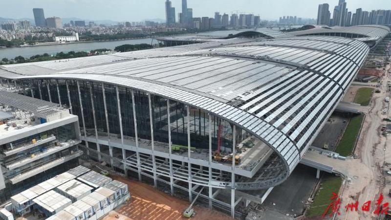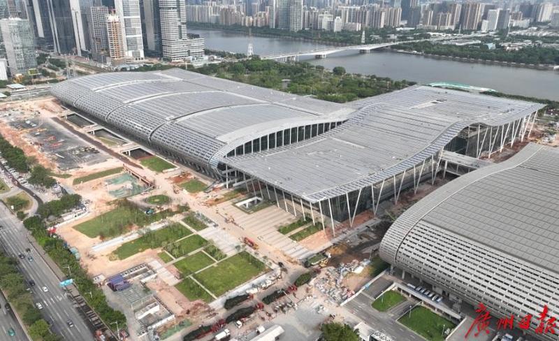 10月9日,記者從中建八局廣交會展館四期項目部獲悉,廣交會展館四期項目展廳區(qū)域?qū)⒂诮诮桓?,目前,該項目處于整體收尾階段。