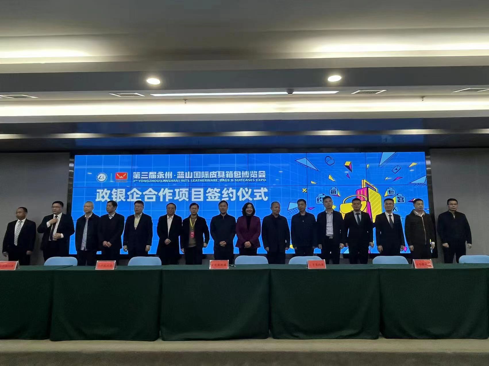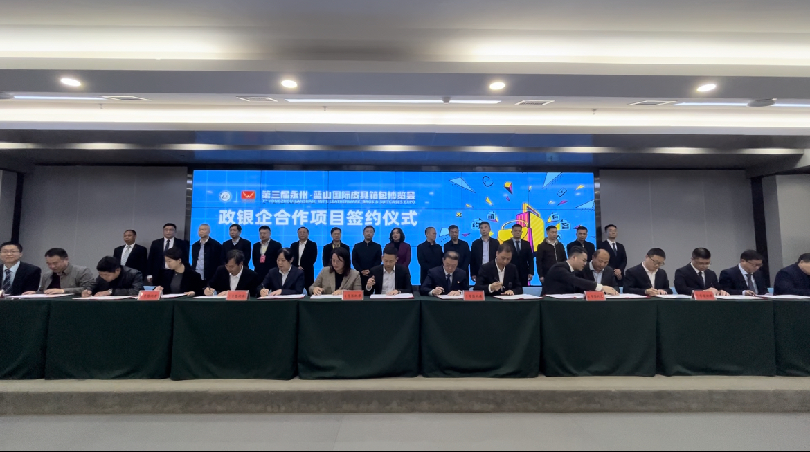 3月24日上午,第三屆永州·藍山國際皮具箱包博覽會開幕后,藍山縣舉行政銀企合作項目簽約儀式。永州市政府副秘書長肖瀟、永州市人民銀行中心支行行長王一凡、永州市銀保監(jiān)分局二級調(diào)研員李樹屏、永州市優(yōu)化辦主任文貽榮、永州市各銀行機構(gòu)主要負責(zé)人以及藍山縣委副書記、縣長鄧群,縣委常委、常務(wù)副縣長張國材,副縣長劉建軍等領(lǐng)導(dǎo)參加了儀式。